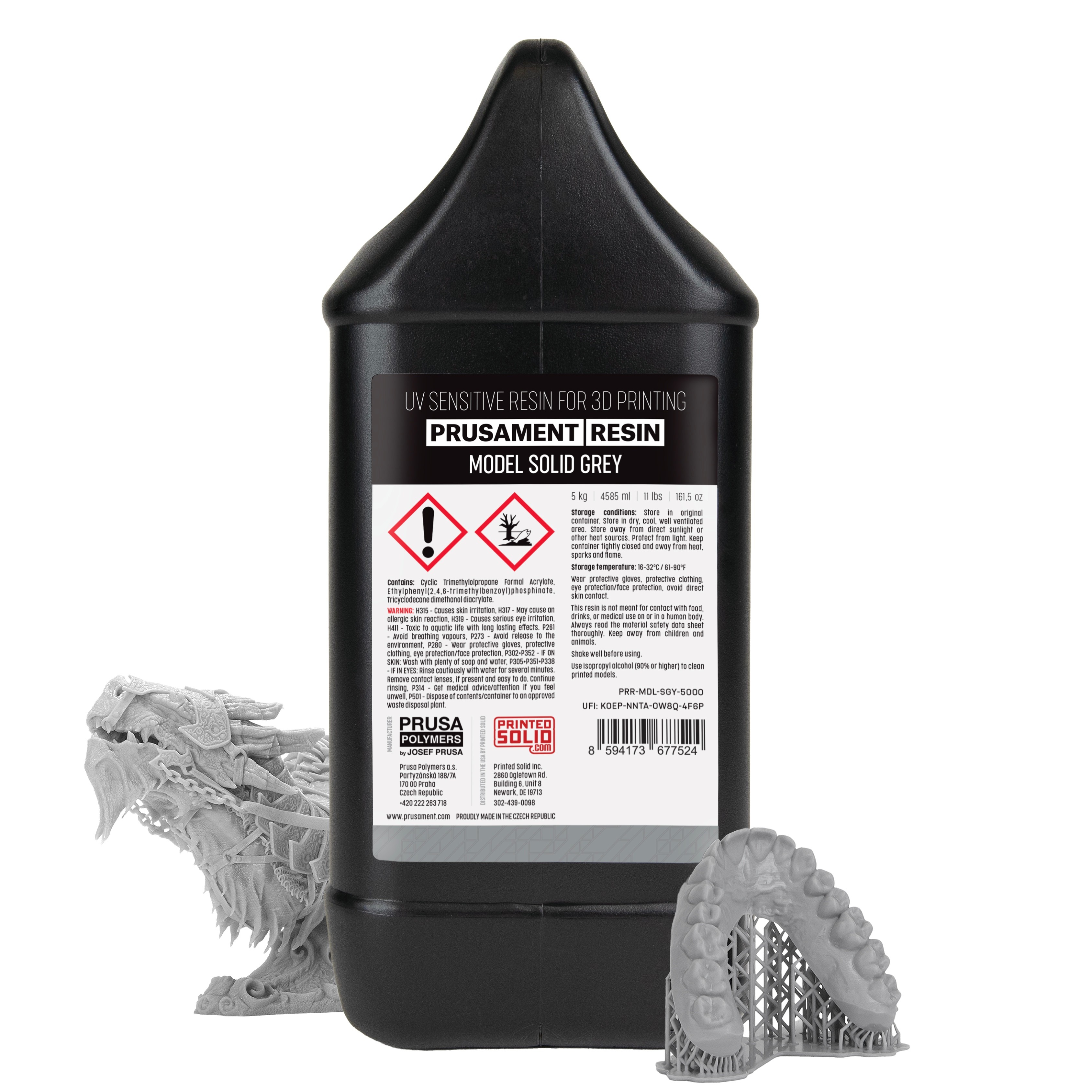 Prusament Resin Model is a high-quality resin developed with a strong emphasis on both user safety and print quality. It offers exceptionally short exposure times, sharp details, low shrinkage, and perfect platform adhesion coupled with high printing performance and reliability. Our unique formula also minimizes unpleasant odors and potential health risks. These qualities make the Model resin a perfect choice for a wide range of use cases from hobby printing, educational projects, art, design, high-end industrial prototyping, or dental models.